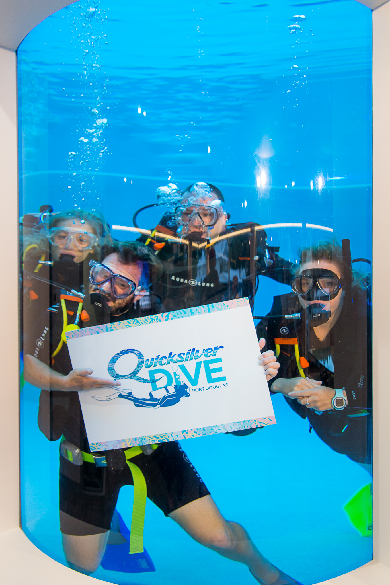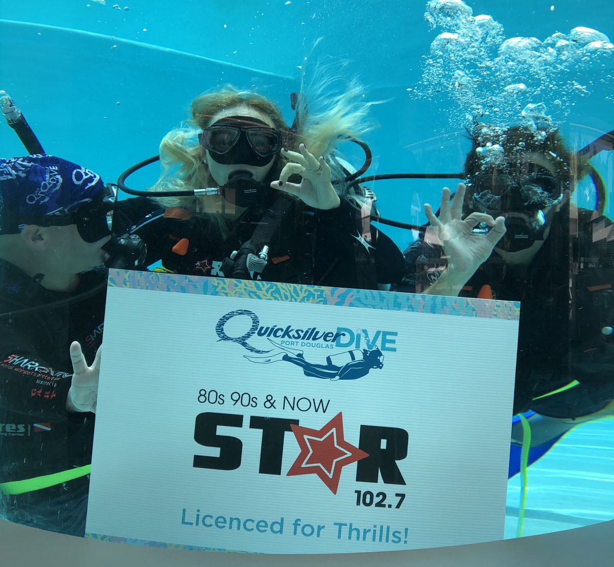 It was a pleasure to have Star 102.7FM radio hosts Dave and Inkie broadcast their breakfast morning show live from our brand new Quicksilver Dive Training Centre in Port Douglas. While not exactly on the Reef, they took the plunge in the 4 mere deep training pool with a Discover Scuba Dive!