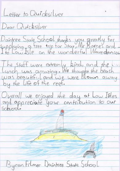 To cater for all the children, Quicksilver sets aside two days to allow for all the children to travel and experience the reef at an investment of $20,000. We have long believed as a company we need to engage with the local children and this is one area we can create a message about the environment and complement their school studies. We have had very positive feedback from the teachers as the children get to engage with students from other schools which is critical as they move to high school and larger schools.