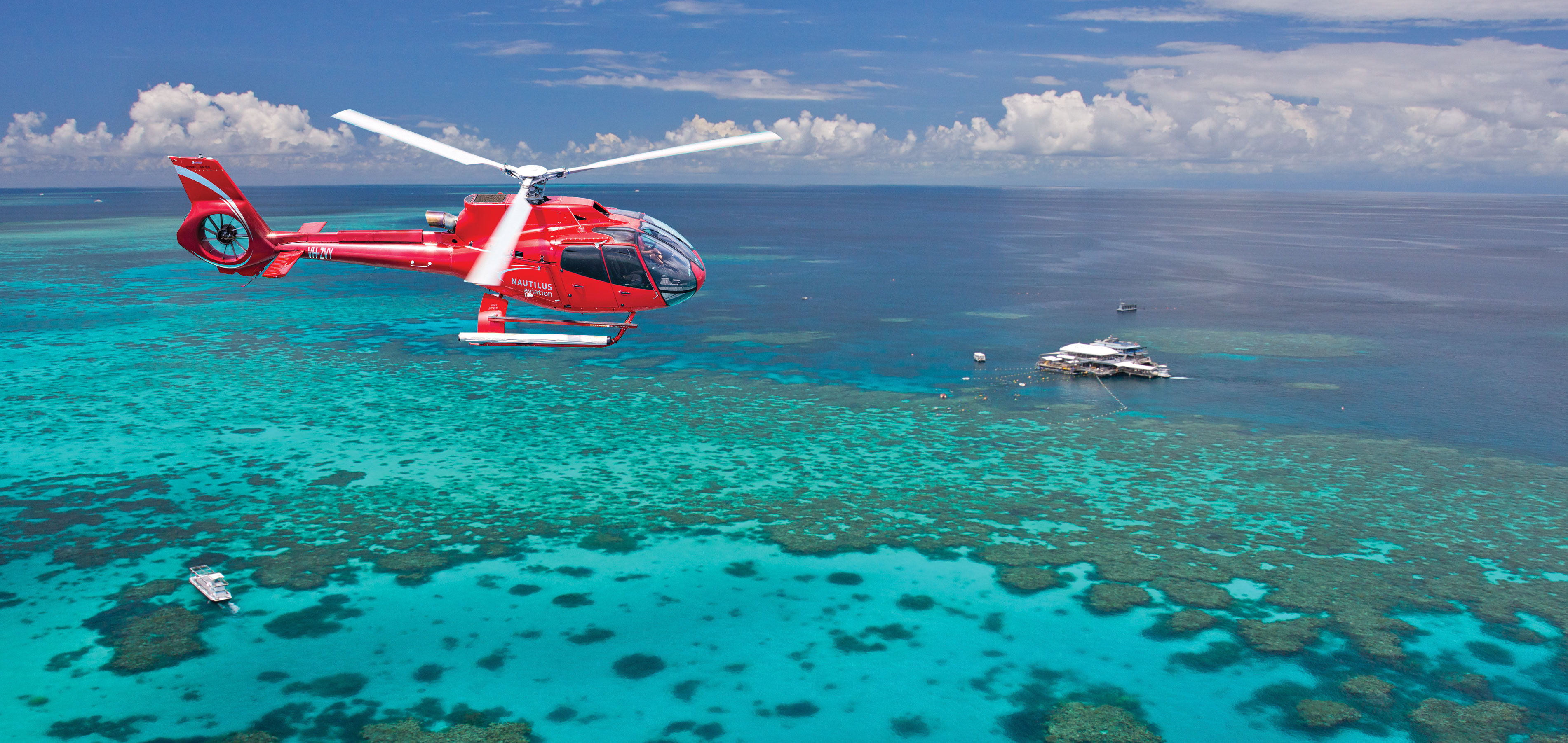 The partnership with Nautilus Aviation will showcase the Great Barrier Reef from a different perspective with helicopters to provide daily services to the Quicksilver Agincourt Reef outer reef platforms, Great Adventures Norman and Moore Reef outer reef platforms and Green Island.